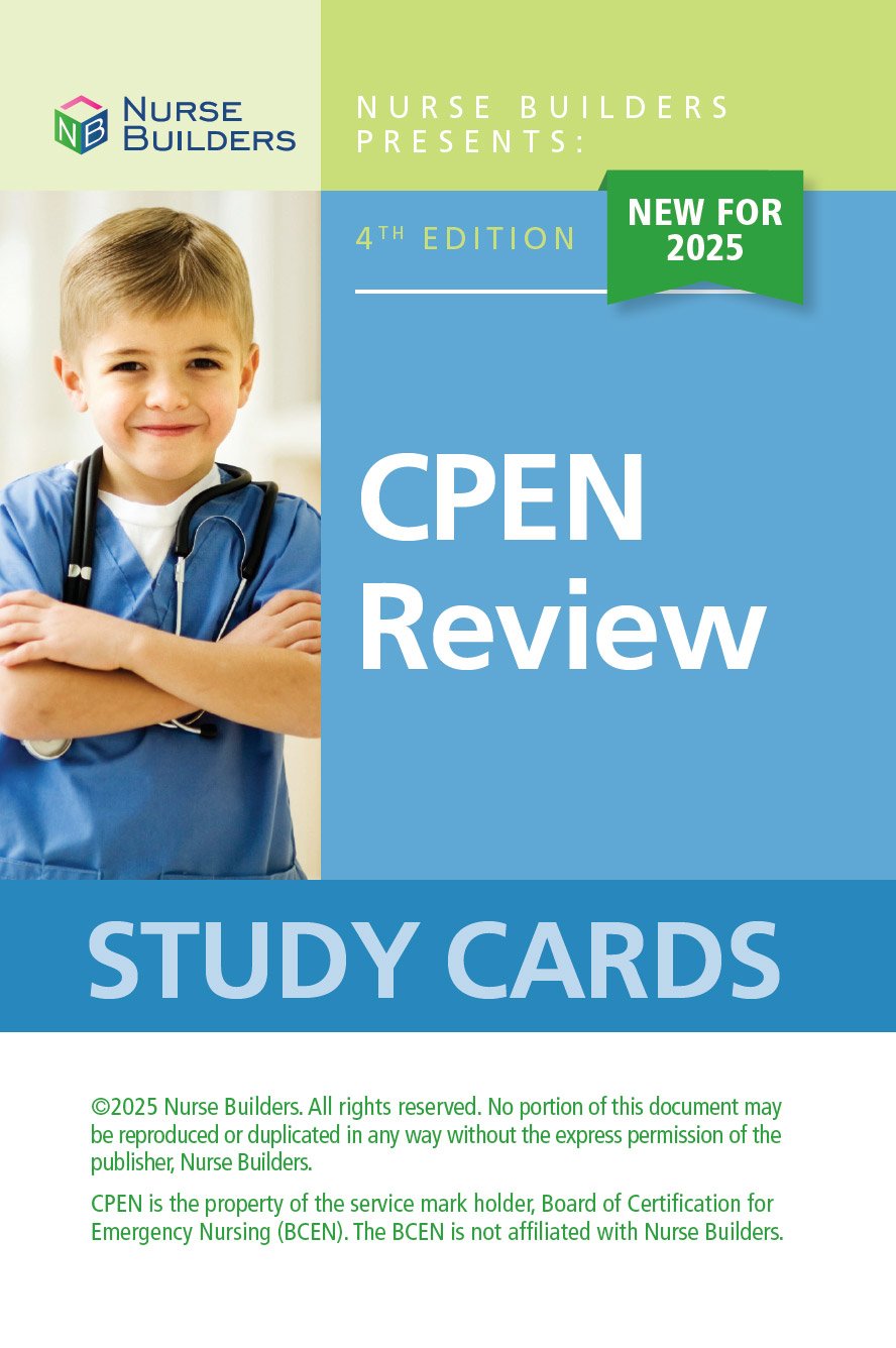 Whether you plan to study individually or as part of a group, Nurse Builders CPEN Review Study Cards are an excellent adjunct to your CPEN Exam preparation. Using CPEN Review Study Cards is an effective and efficient way to review important pediatric emergency nursing content in preparation for the CPEN Exam. Use these 298 study cards to review important information for the CPEN Exam.
